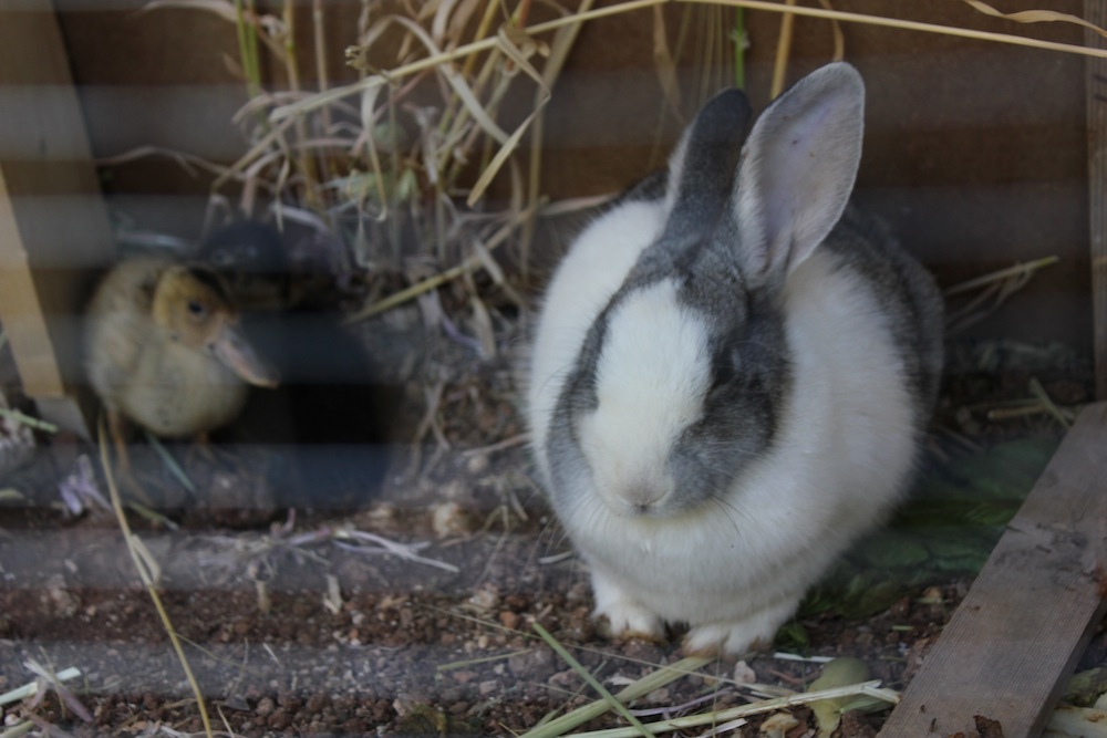 Aside from the two newest resident additions (Sam and I), there are also some new animals who Sultan brought to the house while his mother was in Palestine this past week: two chickens, two one rabbit (as of last night, Antaer had escaped), two ducklings and one dead goldfish in a cloudy bowl in the living room. Ragad had named the escaped rabbit after her pregnant cat that had recently been put on the street by her mother.