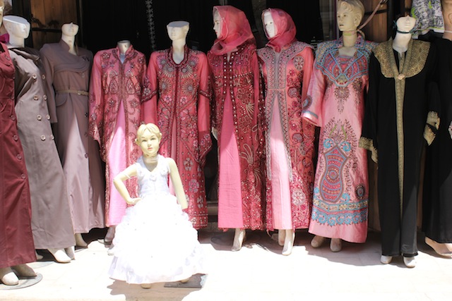 Some traditional Jordanian clothing and a bizarre mannequin.