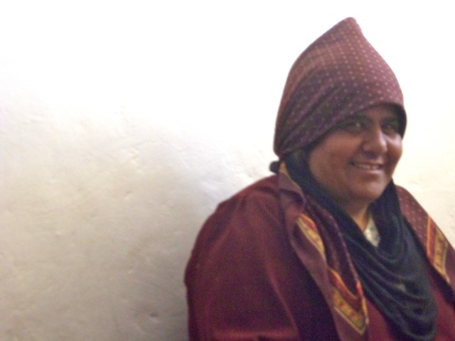 Sam and I knew as soon as we got off the bus, we had landed with yet another silly family. Our host mother, Hiyat, is a 44-year old who looks much older than her years, with a cheerful brown, weathered face. She wears a flowing maroon thobe with tiny gold spots and her matching pointed head covering, a masap, framing her knome-like face. When we were dropped off by the big, yellow SIT bus, she immediately started yelling for someone at top volume (probably Wejdan) in Arabic as we followed her through a slanted metal gate and a dusty yard occupied by chickens, rooster, and sous, chicks.