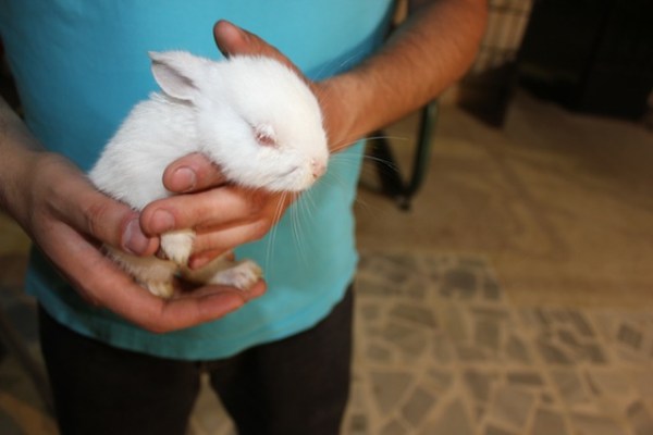 No more than five minutes later, Sultan returned – with a white baby rabbit in his arms. Apparently, his friend works at a pet store and gives him animals for free. The rough translation of the explanation is as follows: