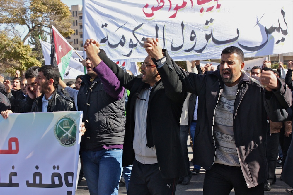 People gathered to express their dissatisfaction with calls for regime reform and an end to rising prices in Jordan.