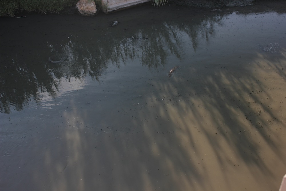 Days down by this river…a stomach-turning thought. We pulled up on the side of the road, next to the river. As soon as I stepped out of the car, the foul stench hit me. And kept getting stronger as I walked closer to the bank. The water is dirty greenish sludge of bubbling garbage…yes, BUBBLING. It looks like it’s raining on the surface all the time. Not too unbelievable when you consider that the nearby slaughterhouse, a fish-processing plant and a Sukleen factory (waste disposal) all dump into the stream, which flows into the beautiful Mediterranean Sea. We were quickly joined by Basal, a 15-year-old who works at the slaughterhouse and is a de-facto member of the search-and-rescue party, as well as a champion croc-spotter.