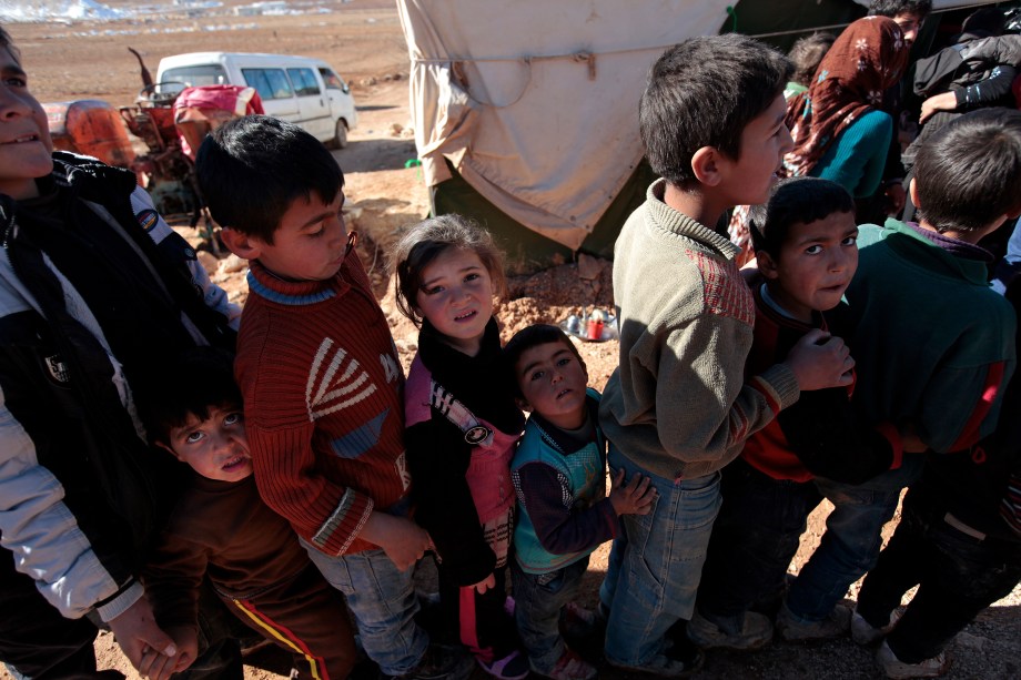 Syrian children line up for donations. Photo by Omar Alkalouti.