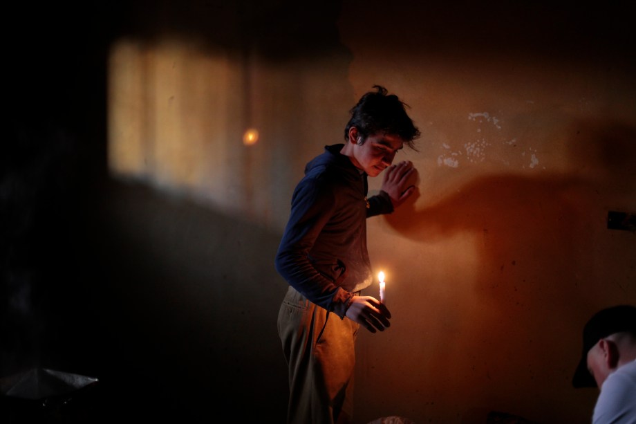 Ahmad lights the room with a candle for Dr. Batley to examine his mothers frostbite feet, Ahmad lives in an area outside of Arsal past the last Lebanese military check point and the borders of Syria. He is from Al Qusair and fled with his family when heavy clashes broke out between Syrian regime forces and opposition group. Photo by Omar Alkalouti.