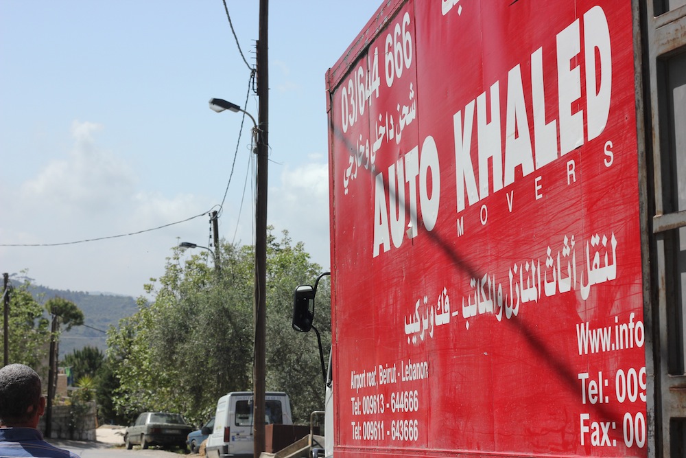 The three crates are moved from the truck bed into a moving van. Photo by me.